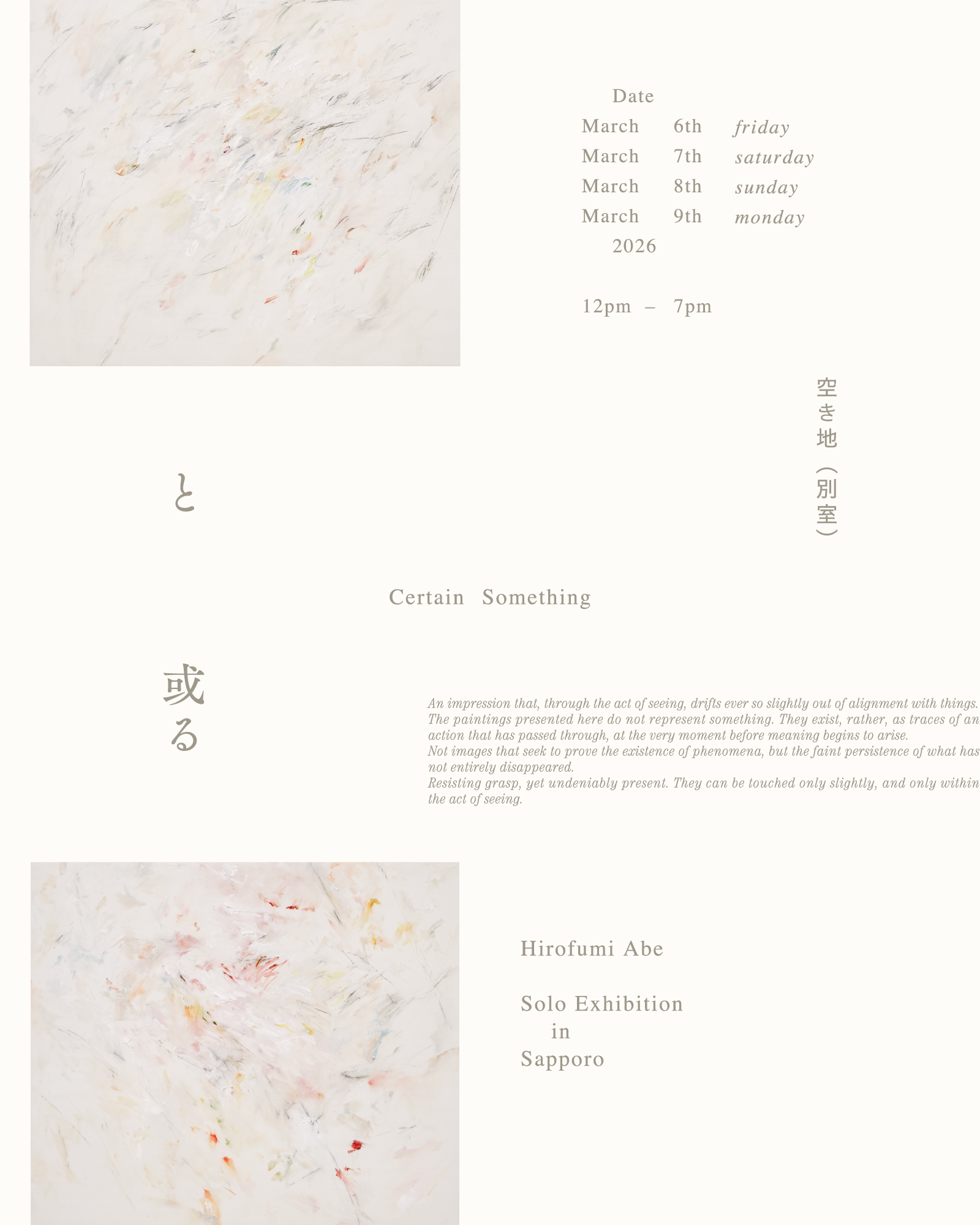 3月6日より4日間、札幌の空き地(別室)にて個展「と或る」を開催します。